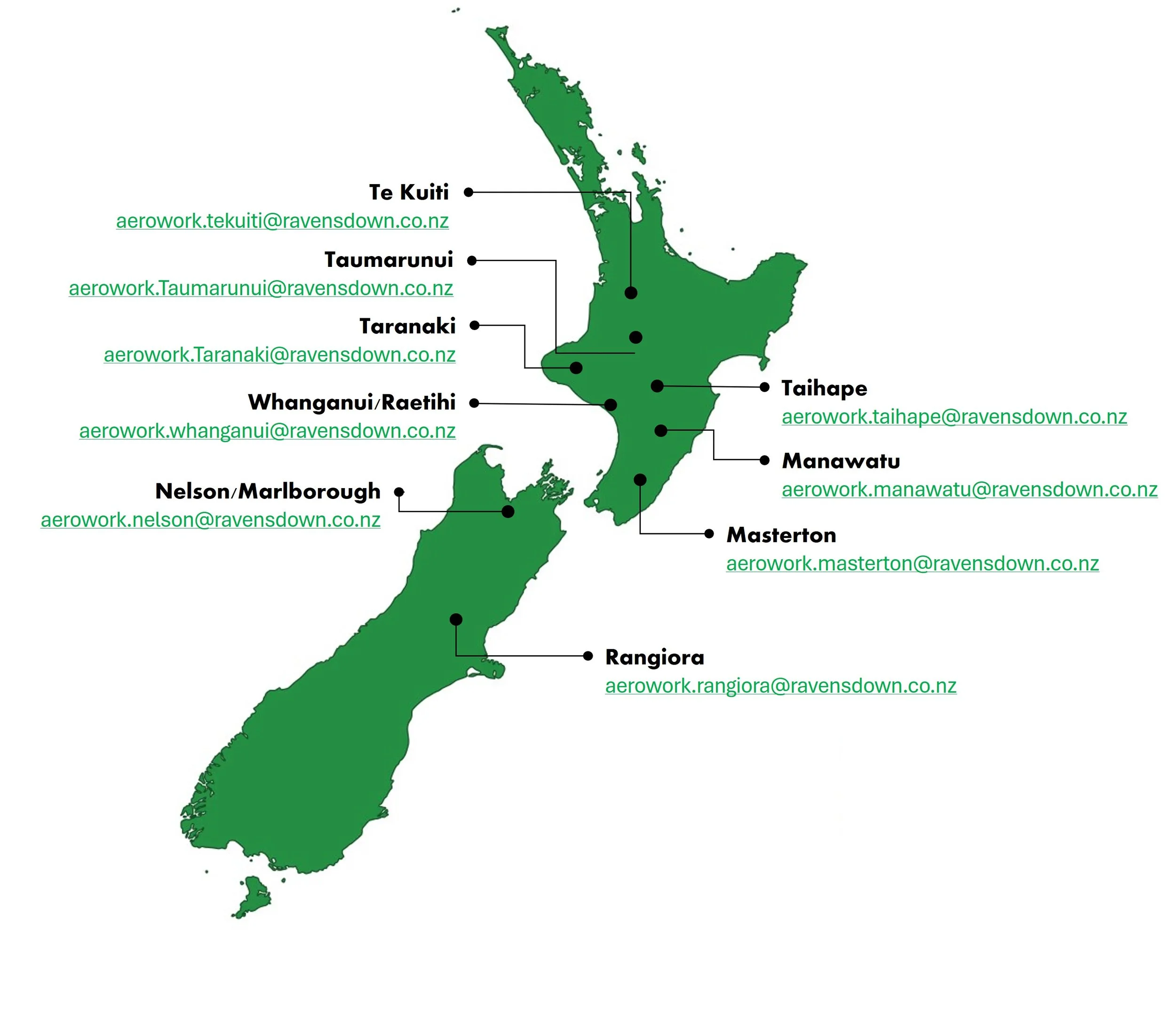 Situated with our Head Office in Whanganui, we at Aerowork pride ourselves on our extensive network of bases with the ability to immediately service 80% of the country.